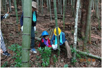 里山学校や間伐体験研修・森林環境学習を行い、竹細工や巣箱づくりなど地域の人や子供たちとの体験活動を行っています。